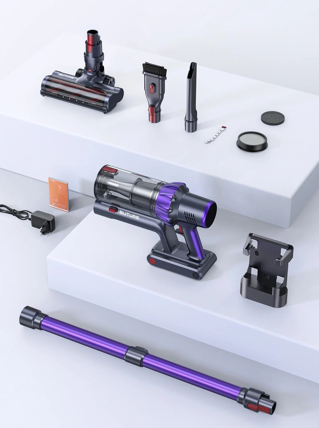 The Buture VC70 combines powerful suction with smart technology to make home cleaning easier than ever. This lightweight cordless vacuum features a 450W motor that effortlessly lifts dirt, dust, and pet hair from any surface. With smart suction adjustment, it automatically adapts to different floor types for optimal cleaning. Enjoy up to 55 minutes of runtime on a single charge, powered by a long-lasting battery. The advanced HEPA filtration system captures 99.9% of allergens, ensuring your home’s air is as clean as your floors. Plus, the anti-tangle brush head makes handling pet hair simple, leaving your home spotless without the hassle.