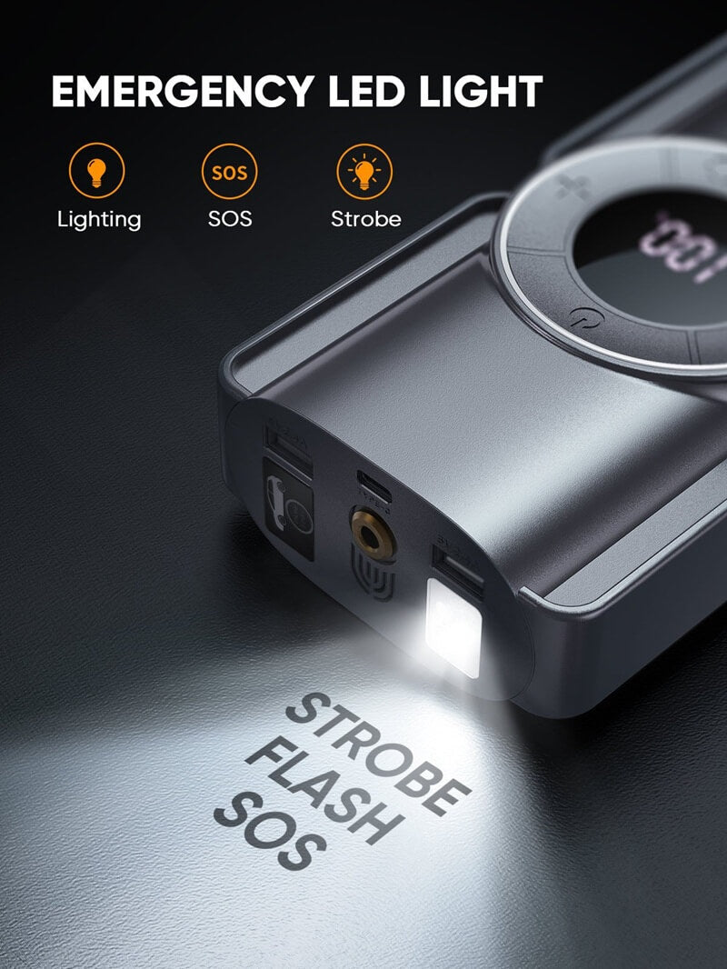 ✅ 4-In-1 Function: Emergency Car Start, 150PSI air compressor, LED Lighting, USB power bank