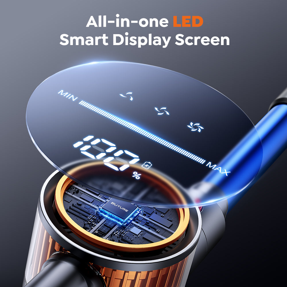Instantly transition from cleaning hard floors to high ceilings, effortlessly captures dust and debris on low-pile carpets, stairs, bare floors, and sealed hard floors,making the Buture X9 Cordless Vacuum Cleaner a truly all-in-one cleaning solution.