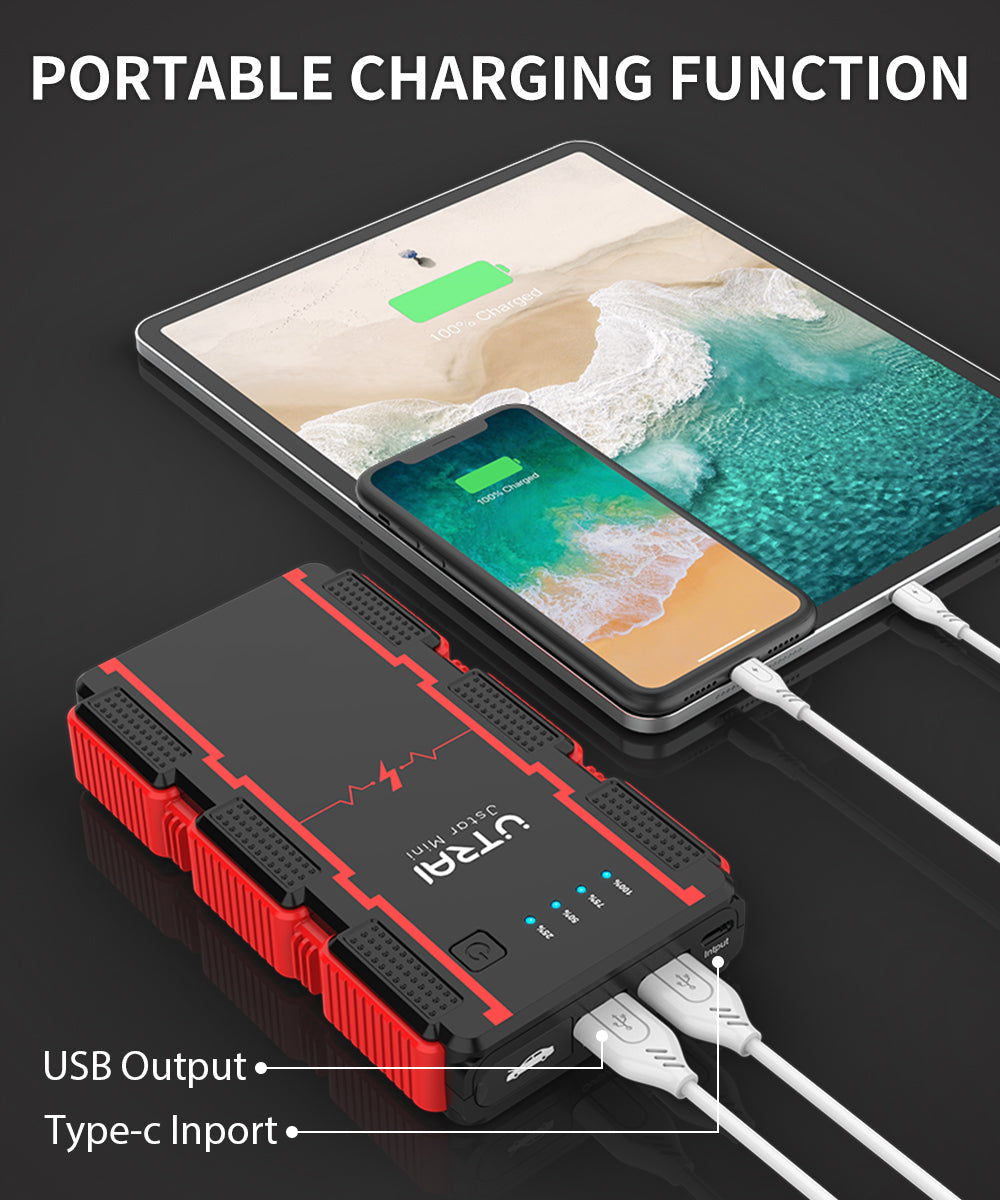 - With 2 USB outputs, working as power bank to charge your smart devices like phones and tablets.
